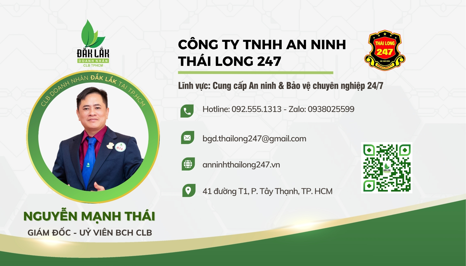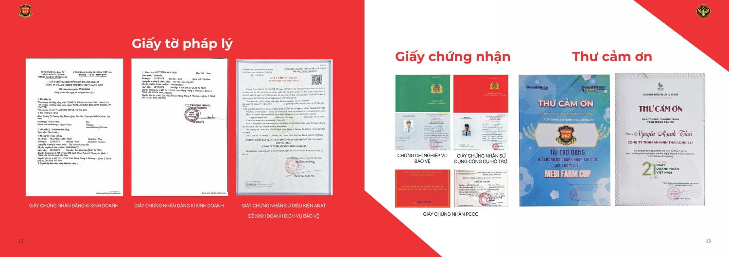 Từ khi thành lập đến nay, công ty TNHH AN NINH THÁI LONG 247 đã từng bước khẳng định vị thế trên thị trường, trở thành đối tác tin cậy của nhiều tổ chức, doanh nghiệp trong và ngoài nước. Chúng tôi cam kết cung cấp dịch vụ với tiêu chuẩn cao nhất, luôn lấy uy tín – chuyên nghiệp – an toàn tuyệt đối làm kim chỉ nam cho mọi hoạt động.